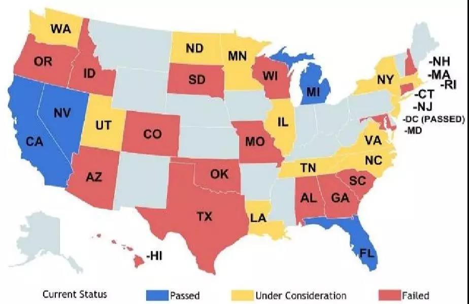 隨著無(wú)人駕駛技術(shù)的不斷發(fā)展演進(jìn),對(duì)無(wú)人駕駛的立法變得十分重要。截至2015年,美國(guó)已經(jīng)有16個(gè)州啟動(dòng)無(wú)人駕駛立法;截至2014 年是12個(gè)州,截至2013年是9個(gè)州,截至2012年是6個(gè)州。Nevada 在2011年授權(quán)無(wú)人駕駛車的運(yùn)營(yíng),是全美第一個(gè)授權(quán)無(wú)人駕駛的州。之后,California,F(xiàn)lorida,Michigan,North Dakota,Tennessee和 Washington D.C 針對(duì)無(wú)人駕駛通過(guò)了相關(guān)的法案。Arizona州長(zhǎng)簽署了無(wú)人駕駛的行政命令。