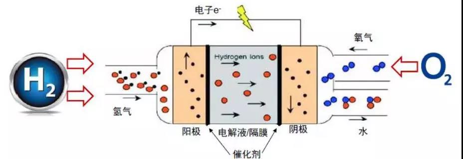 其工作原理是H2在陽極催化劑作用下被氧化成H+和e-,H+通過質(zhì)子交換膜達(dá)到政正極,與O2在陰極反應(yīng)生成水,e-通過外電路達(dá)到陰極,連續(xù)不斷的反應(yīng)就產(chǎn)生了電流。燃料電池雖帶有“電池”二字,卻不是傳統(tǒng)意義上的儲(chǔ)能設(shè)備,而是一種發(fā)電設(shè)備,這是燃料電池與傳統(tǒng)電池最大的區(qū)別。