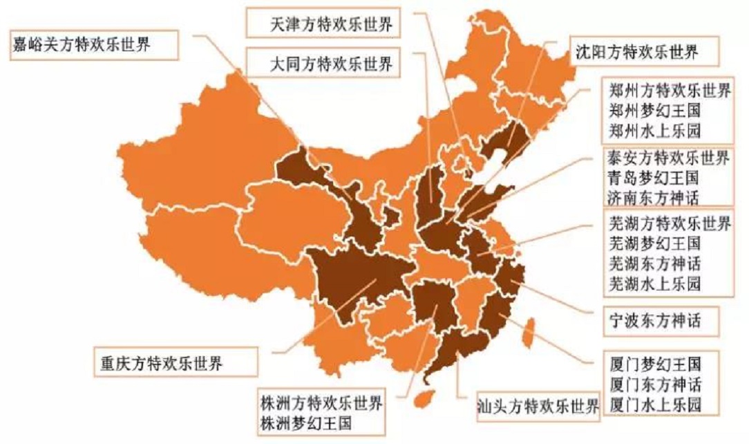 長隆集團(tuán)有5個主題公園和2個馬戲城,以廣東為大本營,集中布局廣州和珠海度假區(qū),雖然布局城市少,但每一個度假區(qū)都規(guī)模龐大。未來長隆集團(tuán)有意走出廣東,布局海南。