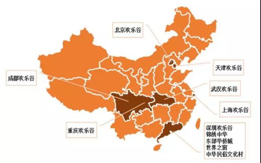 華僑城文旅板塊的重中之重是“歡樂谷”,已在深圳、北京、成都、上海、武漢、天津、重慶這7個城市形成連鎖經(jīng)營,南京、西安歡樂谷在建設(shè)中。“歡樂谷”的布局集中在經(jīng)濟發(fā)達(dá)的一線城市、直轄市和省會城市,重點布局深圳。近年來,除了總部深圳,華僑城在中國旅游資源最豐富的區(qū)域如云南、海南、陜西、四川、山西、北京、河北等地,廣泛布局全域旅游新業(yè)務(wù)。