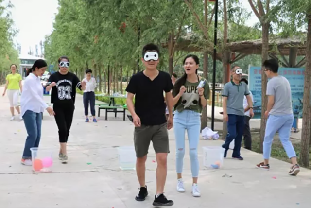 仙人指路比賽中,一人戴上眼罩,在隊友的指示下,奮力往前沖,需要的不僅是“你與我”的互相合作,更是對隊友的絕對信任,是團(tuán)隊默契與協(xié)作的完全展現(xiàn);